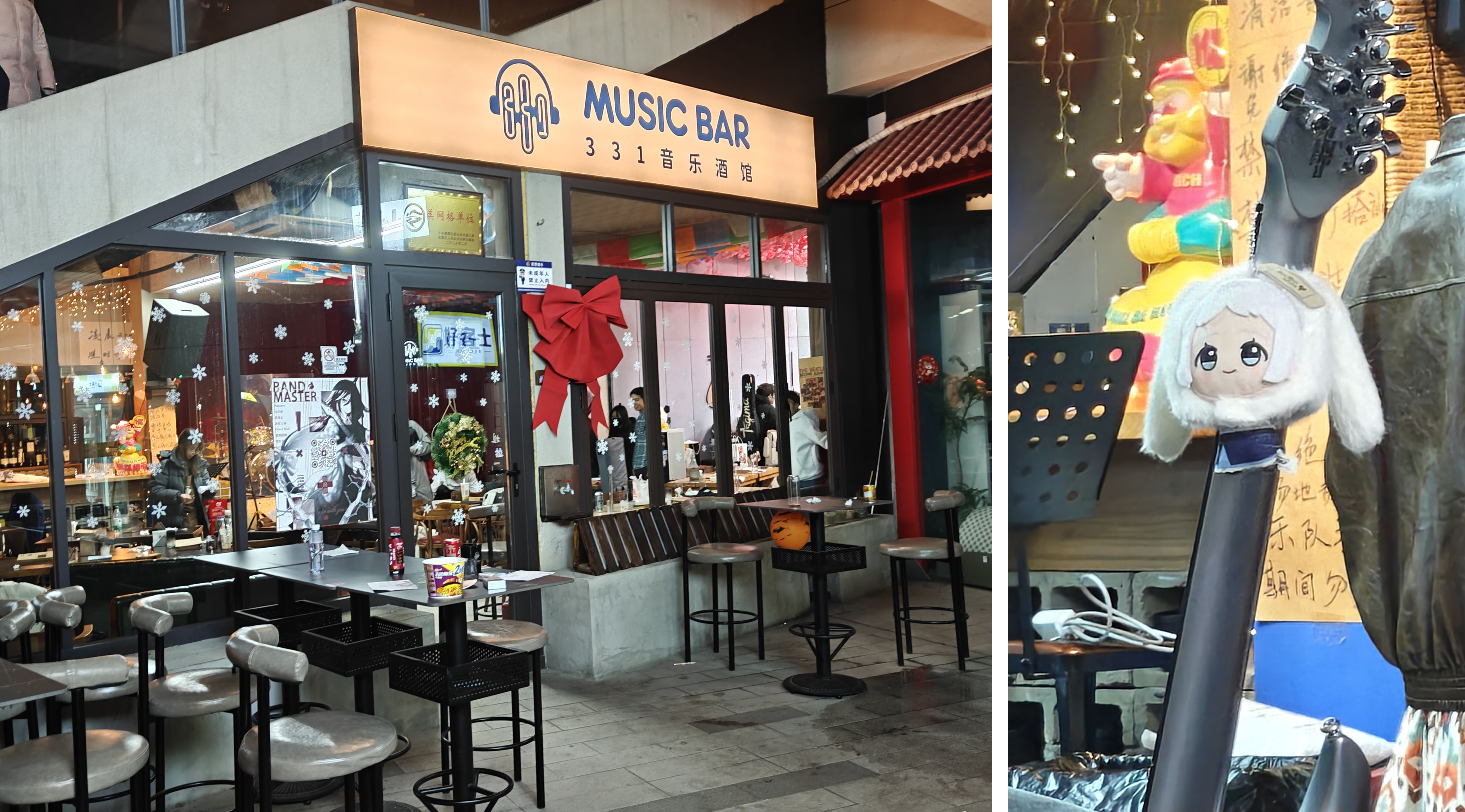 演出当天的上午,我们乐队在学校排练室合奏了五六次,基本都没什么大问题。然而,在我们到达331音乐酒馆调音时,我血脉中的社恐基因还是觉醒了。(调音:摇滚乐队演出时,由于电吉他、电贝斯、键盘都需要接音箱,所以每个乐队都需要单独进行调音,以确保演奏时不会有乐器音量太高或太低)